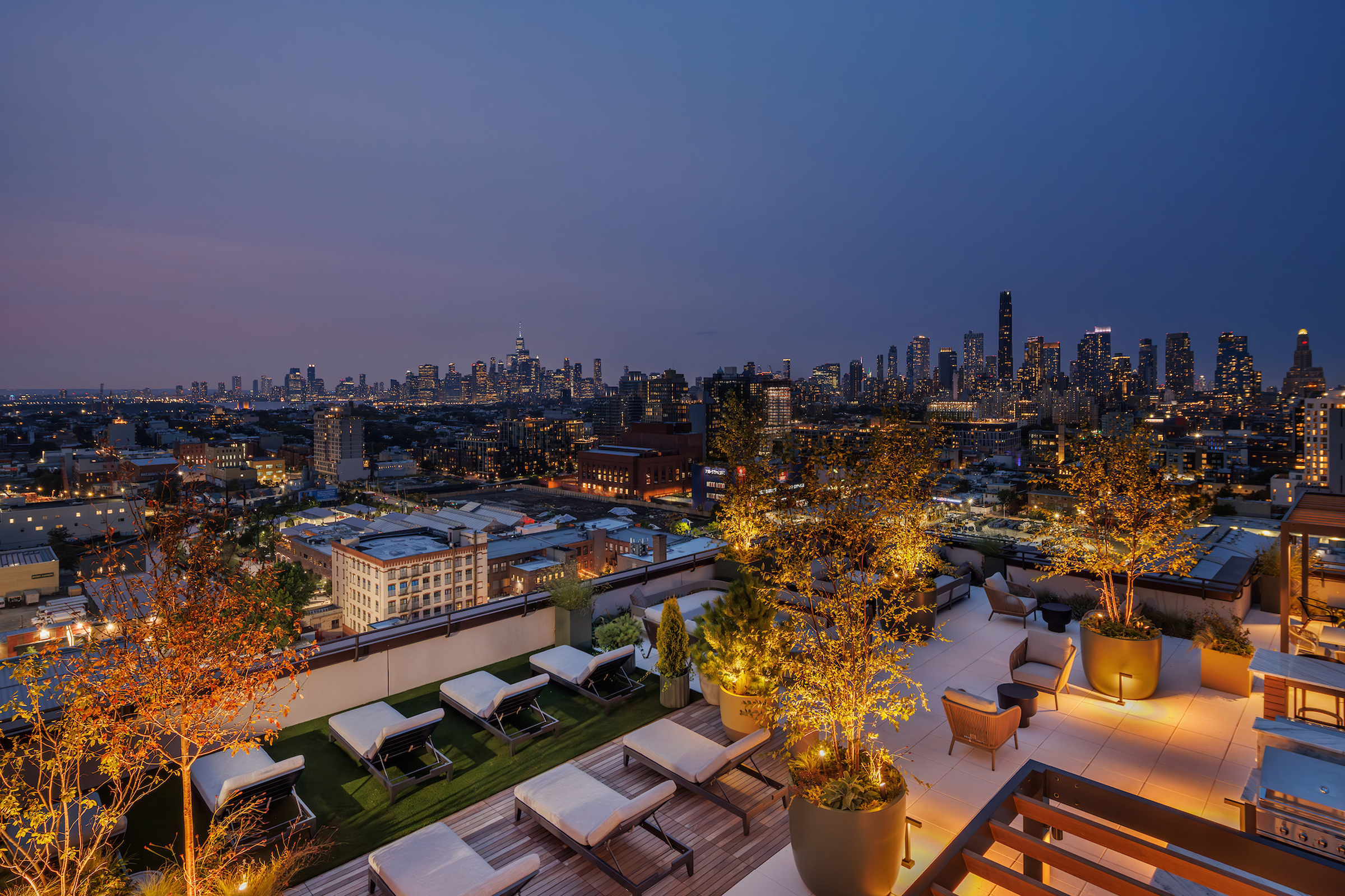 Anchoring the experience is the highly anticipated Sunset Club — a beautifully appointed rooftop lounge featuring a private dining room, outdoor grilling and firepits and a wraparound terrace showcasing sweeping, one-of-a-kind views of Manhattan and Brooklyn.